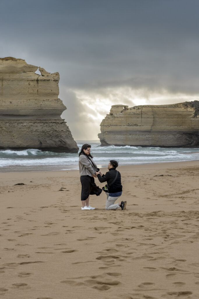 Timing plays a huge role in how a proposal feels — especially when planning an outdoor proposal in Melbourne or along the coast. Sesons can also play a role as well but please don’t let that put you off if you are fearful of rain. The only time I will not shoot if there is lighting within 10KM it’s too dangerous.