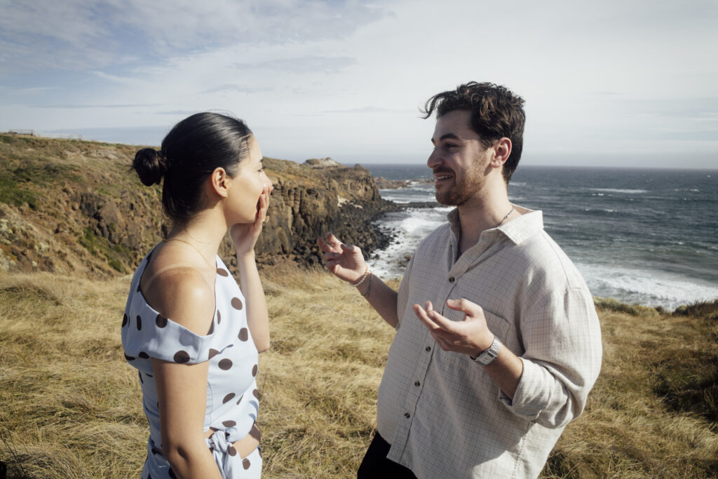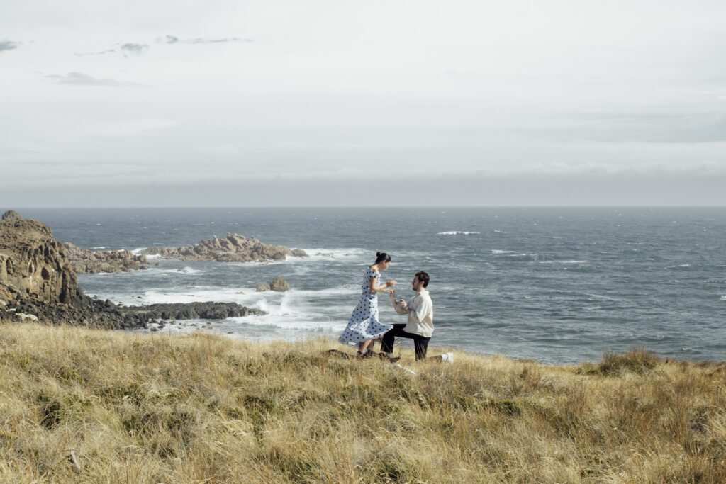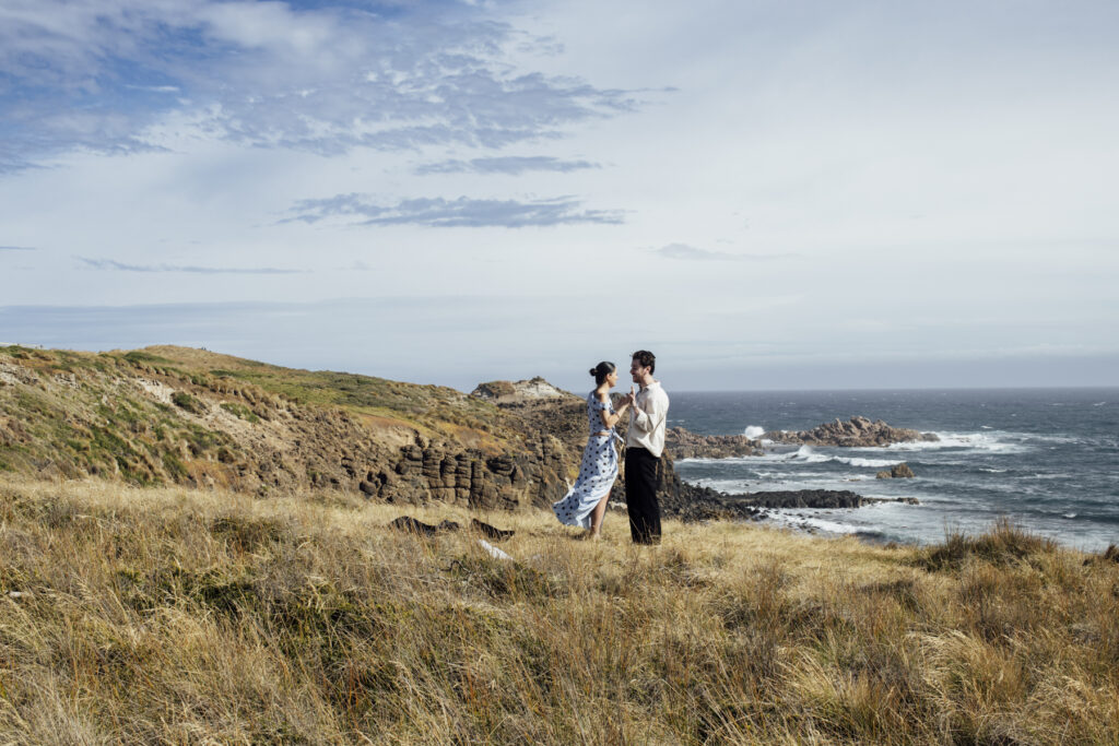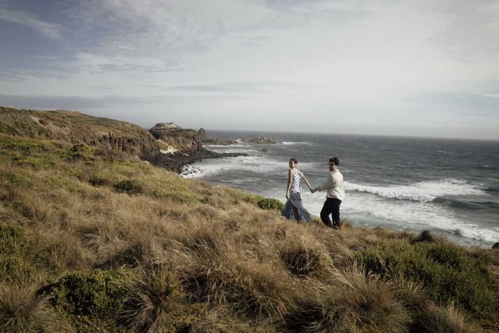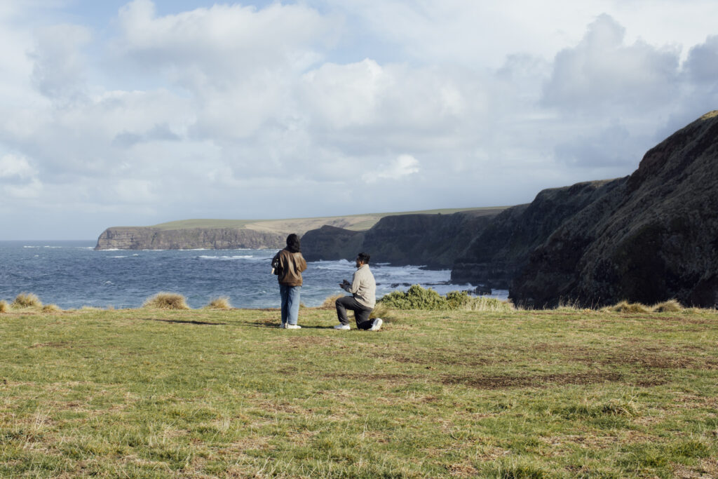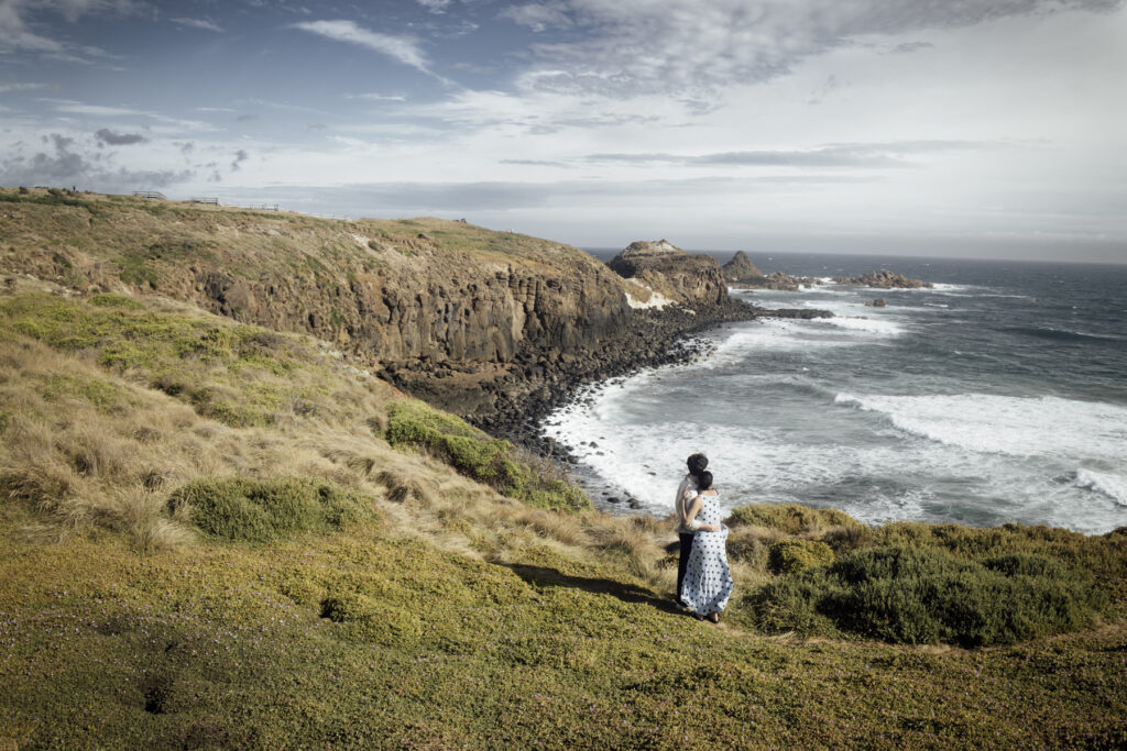 Wild, windswept, and beautifully raw — a great option for a destination proposal near Melbourne with fewer crowds. amazing experiences distilled into one easygoing island sanctuary. Near enough to reach on a short drive from Melbourne but far enough to feel like you’ve had a real escape, Phillip Island is Victoria’s holiday sweet spot. Idyllic beaches, captivating coastlines, and unique wildlife. See below this spectacular Cliff top proposal in Phillip Island.