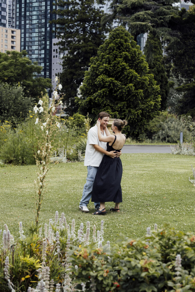 A timeless option for a Melbourne garden proposal, especially in the early morning or a good option for lunchtime, a great picnic spot. Central, elegant, and quietly romantic, then easy access to sooo many restaurants and bars to celebrate after. I should also note there is no photography permit required for here. Below you will find a beautiful proposal from Carlton Gardens, around the area are some stunning spots to have photos afterwards.